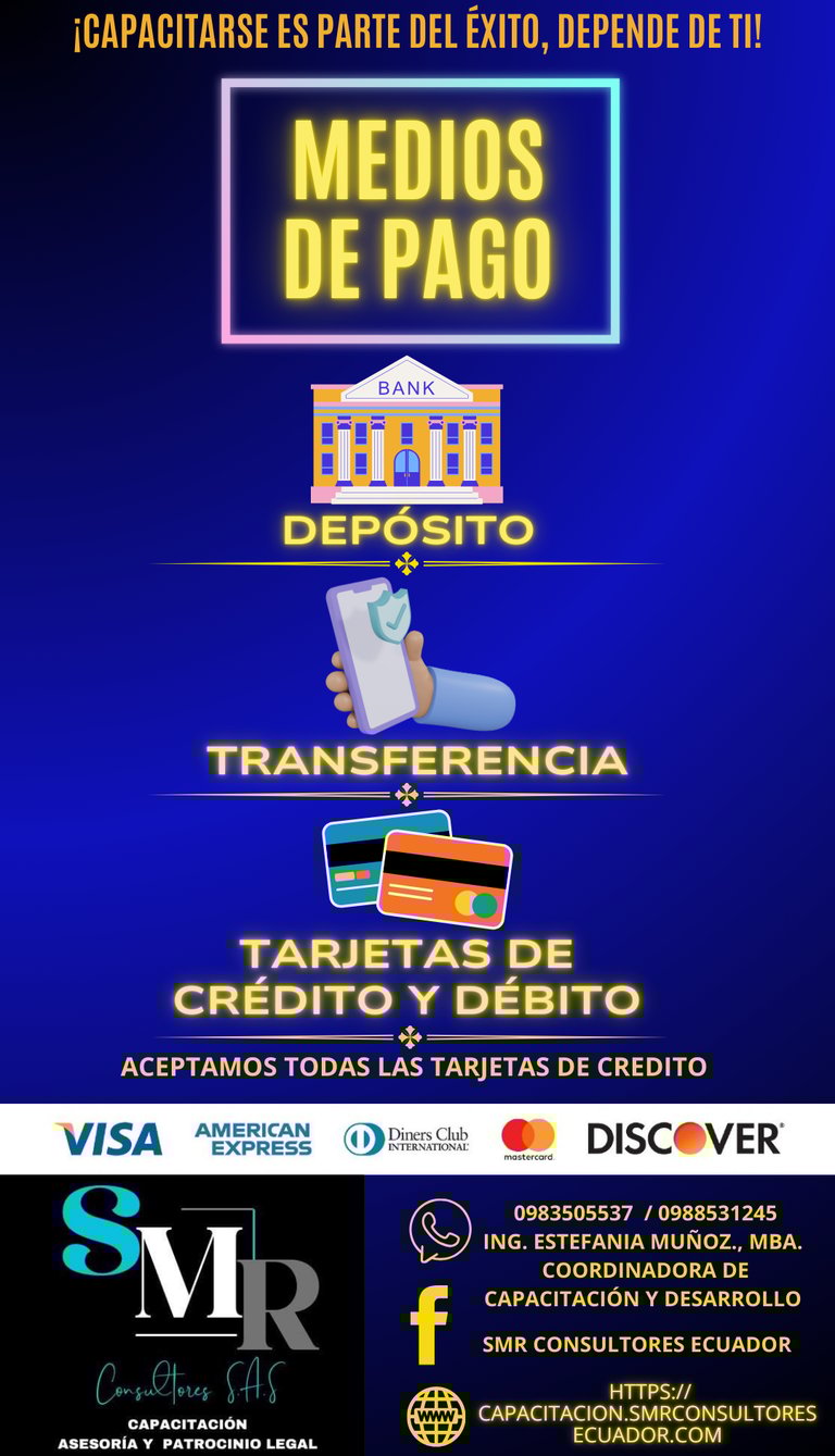 VALIDA NUESTRA EXPERIENCIA POR MÁS DE 6 AÑOS CAPACITANDO ONLINE A NIVEL NACIONAL E INTERNACIONAL, Y VISITA NUESTRA PÁGINA DE FACEBOOK SMR CONSULTORES ECUADOR 👏💯📈.
